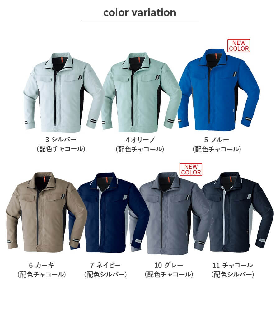 E870 エコ帯電防止 長袖ブルゾン -新色ブルー,グレーが登場-